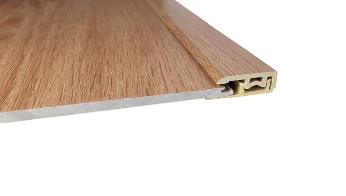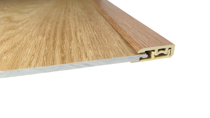 The SPC End Profile by EraFlor is placed at borders or in front of adjacent sills, built-in furniture, tiles or other raised platforms.
